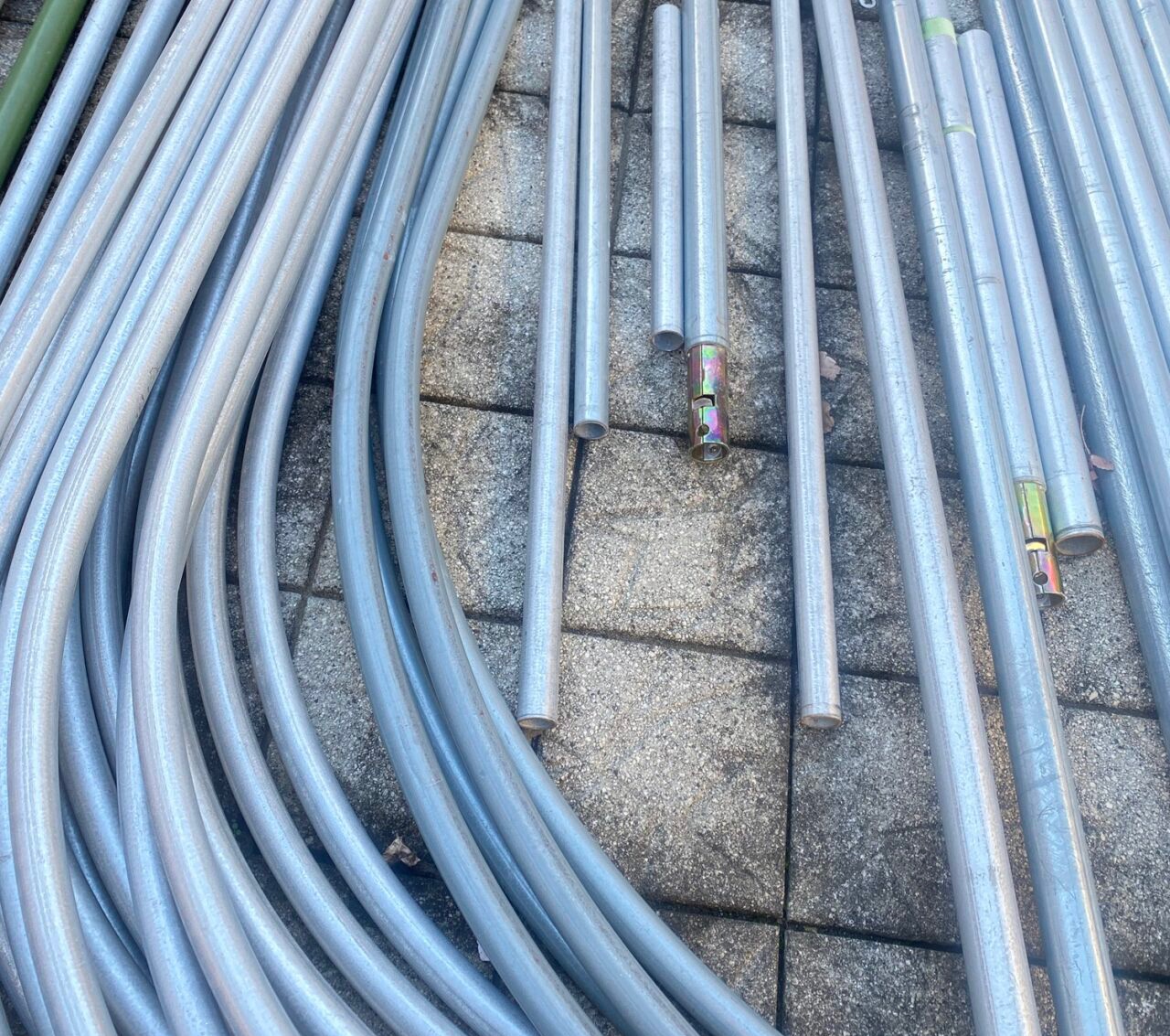 狭いので鋼管などで立体的に利用していた。組み替えながら10年以上は使っていた物で、そのまま残しても良かったけれど、今後の建物のメンテナンスなども考えて、すべて解体してかわごやに移動することにした。違う形で再利用したい。両方管理するほど器用じゃないからね。菜園のベースはかわごやにバトンタッチ。